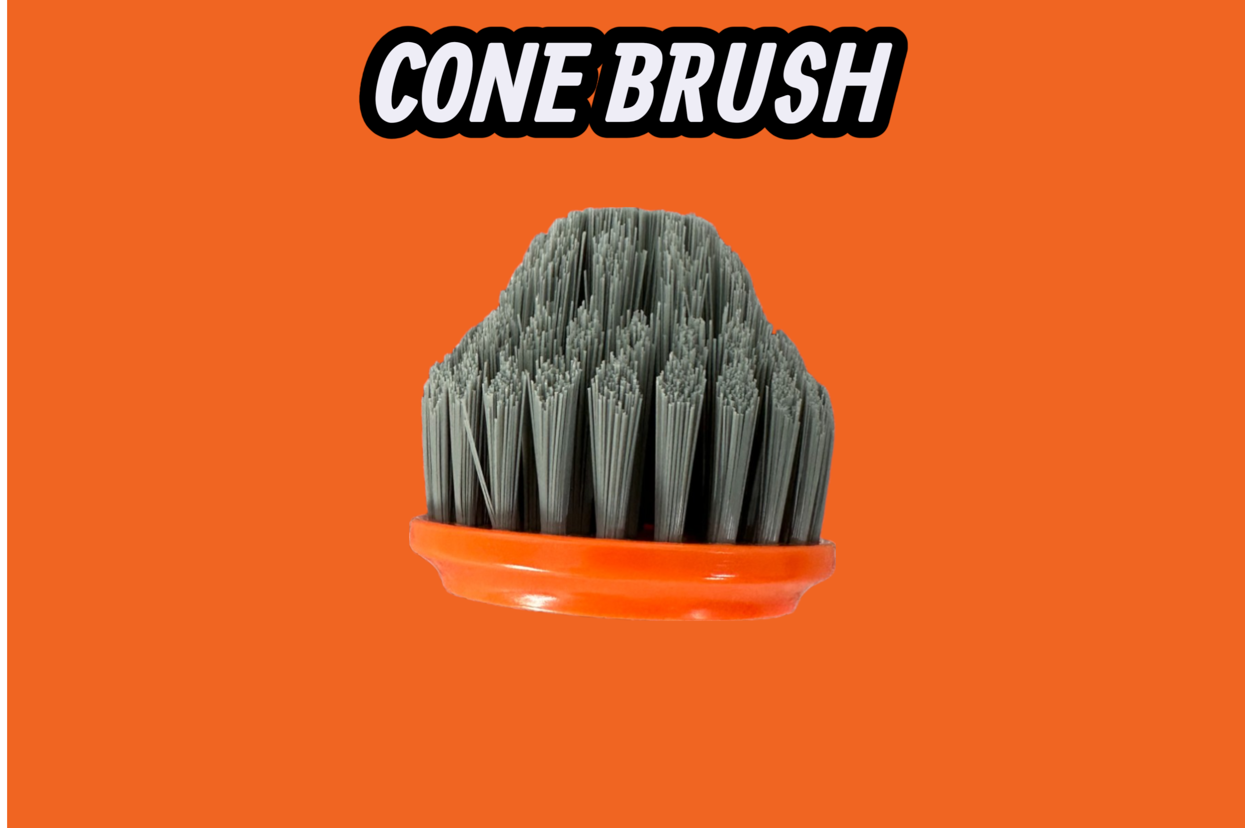 The "CONE BRUSH" attachment is a great option to get into those stubborn areas. It is also more flexible and softer than the flat brush head which allows it to flex and get into all sorts of areas. Some key points are: